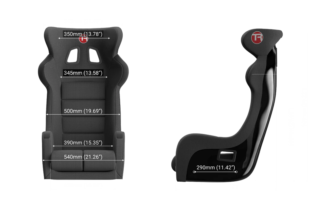 Trak Racer’s SA-10 Fibreglass Seat has been engineered for both strength and comfort with sizing to suit most drivers specifically in the S-XL size range (up to 42″ waist). The SA-10 is an ultra-light competition simulator seat that features integrated bolsters and is wrapped in a washable, impact-absorbing and fire retardant fabric. Support, safety, comfort, durability, and style are rare qualities in a single race seat, which elevates the Trak Racer SA-10 above the competition. Utilizing state of the art technology, the SA-10 will withstand the rigorous conditions of sim racing. Suitable for all cockpits, please take note of the mounting point locations.